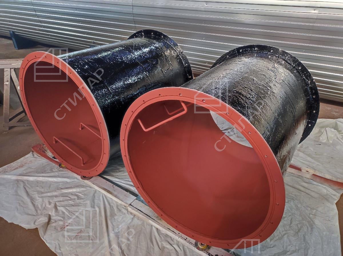 Для изготовления резервуаров использовалась сталь высокого качества, а для защиты от коррозии была применена специальная система окрашивания. Она включает в себя нанесение нескольких слоев грунта, с последующим нанесением финишного слоя резинобитумной мастики для создания специального водоотталкивающего барьера. Такое решение гарантирует долговечность и надежную защиту резервуаров, с учетом их эксплуатации под землей.